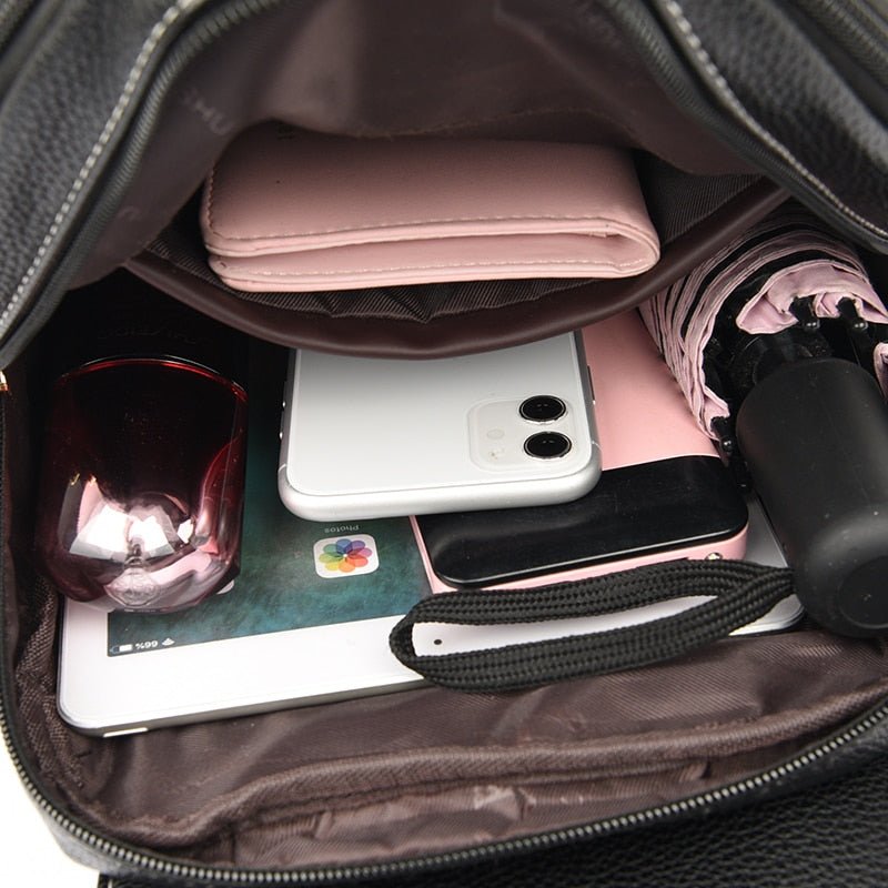 Com design requintado, a Mochila Feminina de Couro - Jolie enriquece qualquer look com beleza e praticidade. Graças ao seu tamanho compacto em uma construção espaçosa, você pode levar todos os seus objetos essenciais do dia a dia de maneira discreta e elegante, garantindo versatilidade para qualquer ocasião.