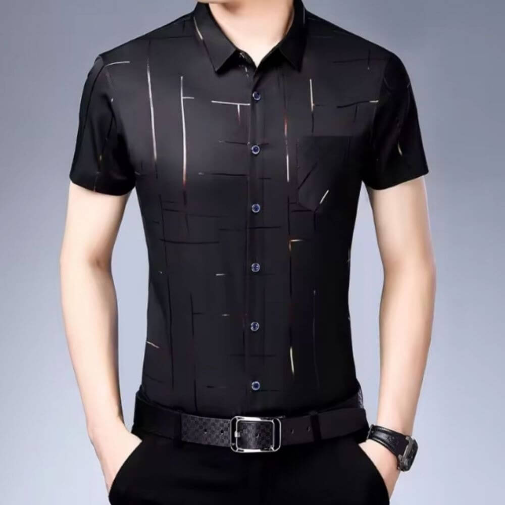 Feita com tecido seda gelo, a camisa oferece um toque suave e um caimento impecável, para quem não abre mão de estilo e conforto.