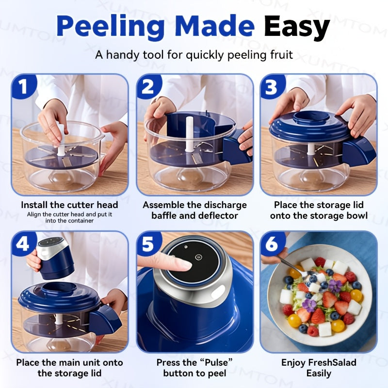 Descascador Elétrico de Frutas de 5 Lâminas | Descascador Automático Recarregável USB para Uvas, Alho, Tomates-Cereja | Gadget de Cozinha Eficiente, Uso Doméstico, Fácil de Limpar, Azul - Ótimo Presente para o Dia dos Namorados e Dia da Mãe