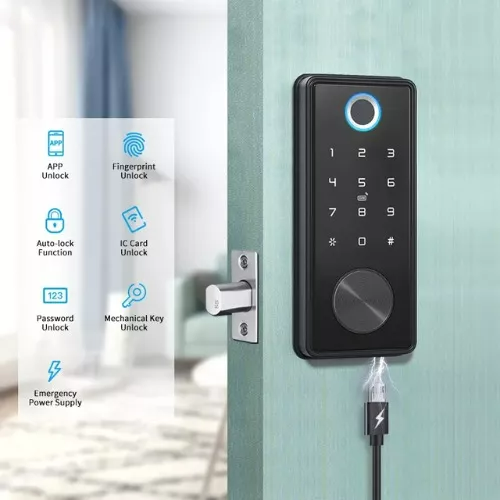 - 5 dispositivos de desbloqueio: Tuya APP, impressão digital, senha, smart card, chave física